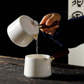 德化羊脂玉白瓷功夫茶具套装配件茶道泡茶壶木柄防烫侧...