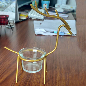 北欧简约居家生活金色铁艺小鹿玻璃烛台浪漫烛光卧室餐...