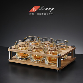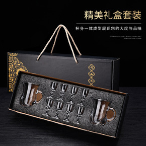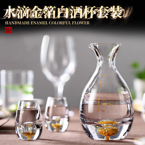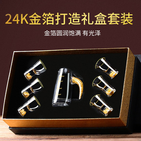 奢华金箔水晶玻璃白酒杯套装家用小一口酒杯烈酒杯刻度...