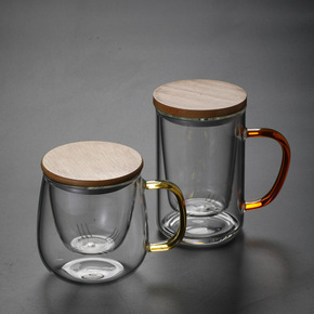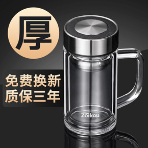 茶杯双层玻璃杯带把商务办公水杯男大容量带过滤便携家...