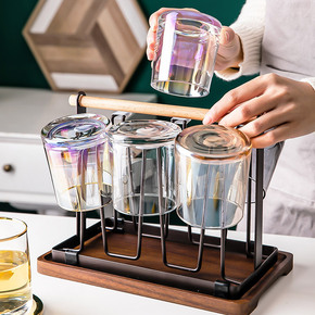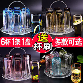 玻璃杯家用套装6只装带托盘杯架耐热水杯茶杯果汁杯啤...