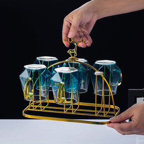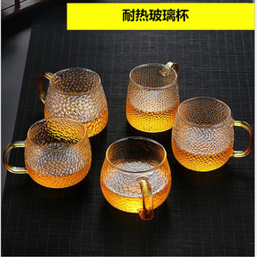 轻奢锤纹玻璃杯家用带把水杯客厅家庭喝水杯子茶杯杯具...