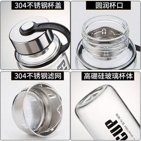 双层玻璃杯带盖把手柄便携男女办公过滤大容量透明水杯...