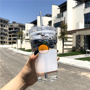 韩国INS同款自制橘子玻璃杯可爱卡通早餐牛奶果汁杯...