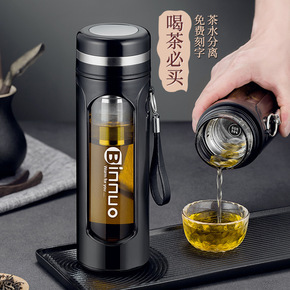 茶水分离泡茶杯个人专用水杯男女便携防摔隔热双层大容...