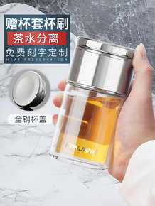 茶水分离泡茶杯双层隔热玻璃杯男女保温便携摔小巧迷你...