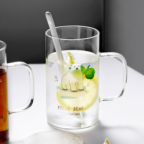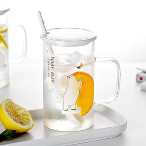 带把手玻璃马克杯子男女款透明ins风大容量带盖勺家...
