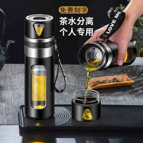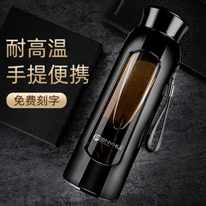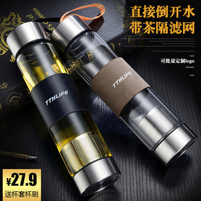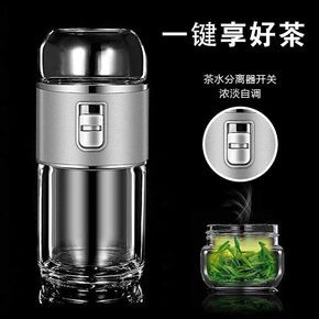 双层玻璃杯男保温水杯便携隔热茶水分离过滤茶杯家用透...