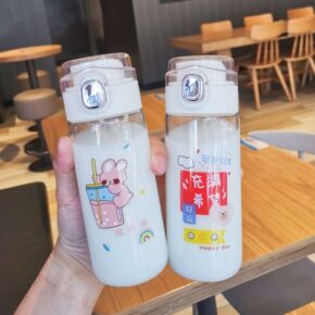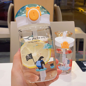 儿童创意吸管玻璃杯高硼硅耐热防爆提绳便携学生斜跨喝...