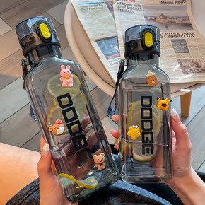 运动塑料水杯大容量带提绳便携随行手杯户外健身仿漏男...