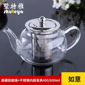 功夫茶具透明不锈钢过滤泡茶器红茶壶玻璃茶具高硼硅加...