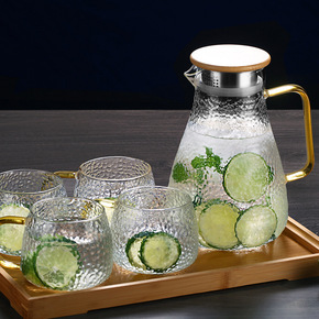 厂家批发锤纹冷水壶耐高温玻璃茶壶 夏日果汁大容量玻...