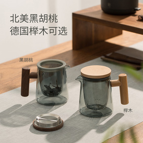 木笙玩物简约有色玻璃煮茶器耐高温泡茶水壶木把过滤功...