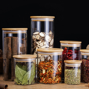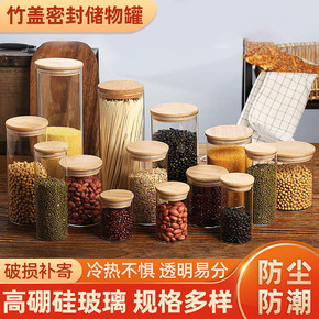 高硼硅玻璃储物罐竹木盖直筒玻璃密封罐杂粮收纳罐防潮...