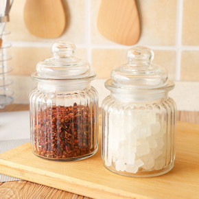 批发厨房用品透明密封玻璃罐条纹花茶虫草瓶调料罐糖果...