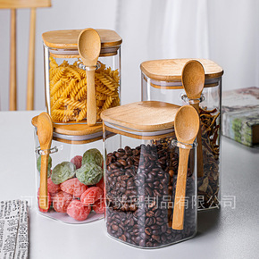 厨房密封透明玻璃储物罐五谷杂粮干果收纳罐高鹏硅竹木...