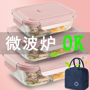玻璃保鲜盒微波炉专用加热便当碗上班族带饭的饭盒密封...