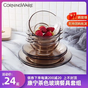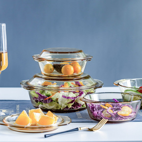 茶色玻璃碗带盖耐热带盖汤碗家用玻璃煲泡面碗水果沙拉...