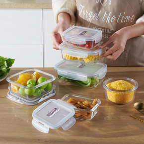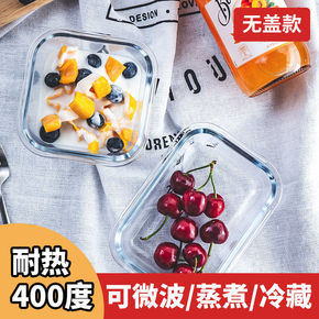 耐热玻璃饭盒微波炉烤箱可用保鲜盒密封碗便当碗儿童辅...
