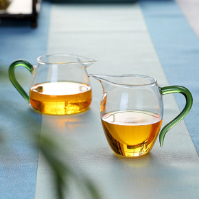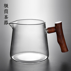 日式木把公道杯透明玻璃公杯分茶器功夫茶具茶海耐热手...