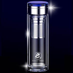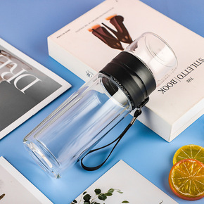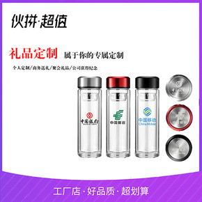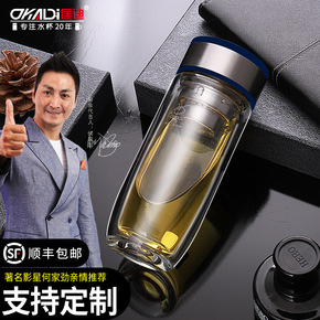双层玻璃杯过滤便携透明水杯女礼品男logo茶杯子防...