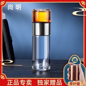 尚明C002双层耐热玻璃泡茶杯 创意便携水杯 办公...