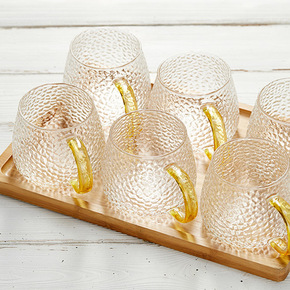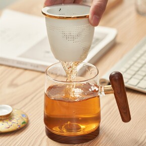 左茗右器锤纹玻璃杯办公室茶水分离泡茶杯带木盖带把女...