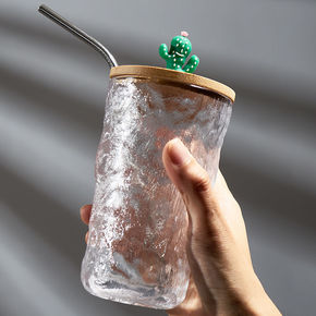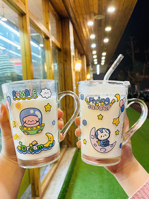 高颜值玻璃把杯带盖带刻度儿童牛奶吸管杯办公室可爱少...