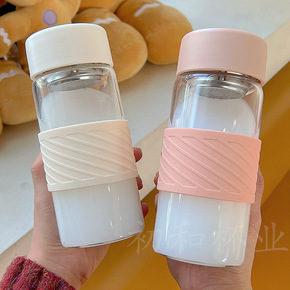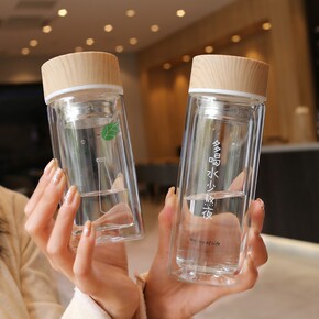 清新简约双层耐热玻璃杯大容量便携女学生高颜值隔热防...