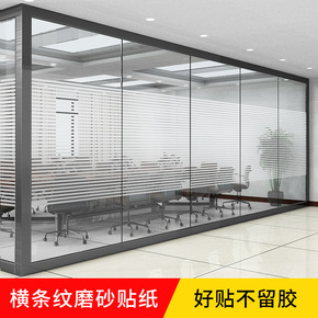 办公室玻璃静电磨砂贴纸半透明条纹防撞条隔断腰线窗户...