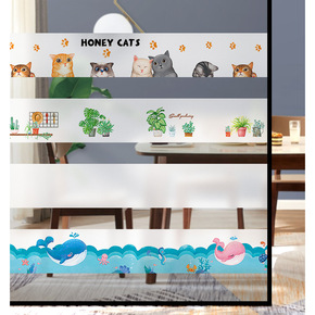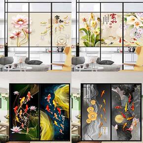 厂家批发无胶彩绘玻璃纸静电无残留窗花纸定制尺寸浴室...