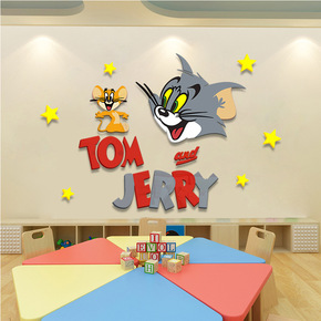 Tom猫和老鼠3d立体墙贴纸亚克力卧室卡通创意儿童...