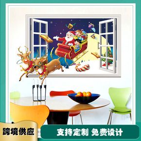 3D圣诞节日店铺橱窗贴装饰品墙贴纸公司玻璃商场门店...