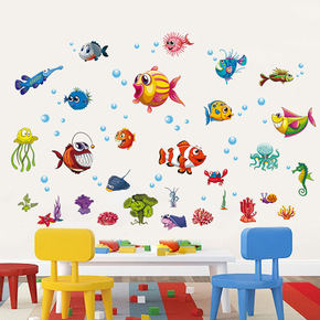 卫生间淋浴室墙壁瓷砖玻璃自粘小鱼可移除贴画儿童房墙...