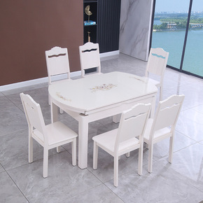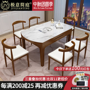 餐桌椅组合现代简约可伸缩折叠方圆两用圆桌家用实木多...
