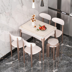 后现代轻奢大理石餐桌椅组合餐厅家用吃饭桌子小户型简...