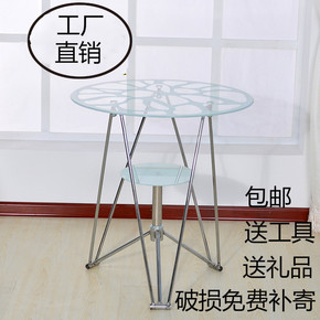 洽谈桌玻璃桌子圆钢化玻璃小圆桌现代简约玻璃圆桌椅组...