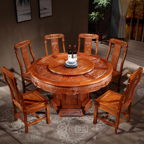 实木餐桌大圆桌带转盘8人0人5折叠家用小户型圆形简...