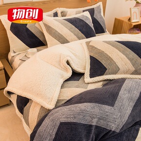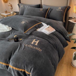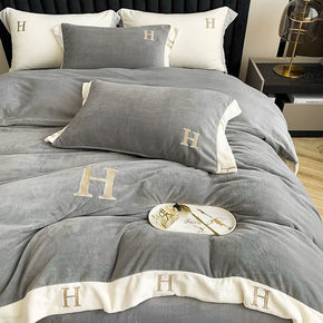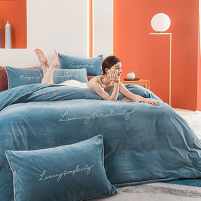 冬季加厚牛奶绒四件套保暖珊瑚绒法兰绒被套双面绒三件...