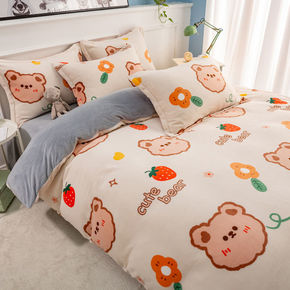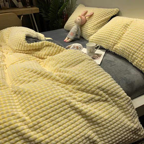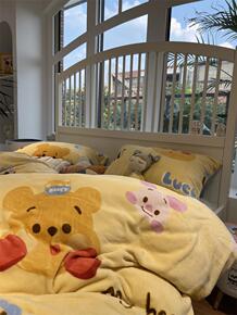 ins黄色小熊珊瑚绒双面牛奶法兰绒保暖四件套加厚1...