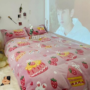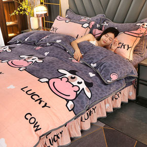 卡通牛奶绒加厚床上四件套珊瑚绒床品冬季法莱法兰绒双...