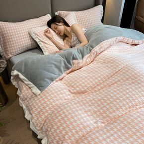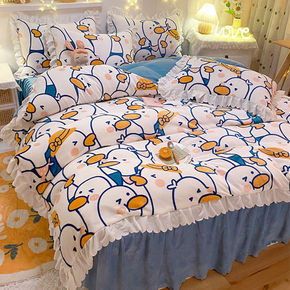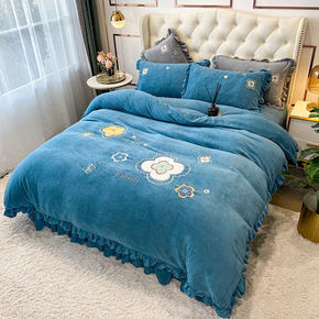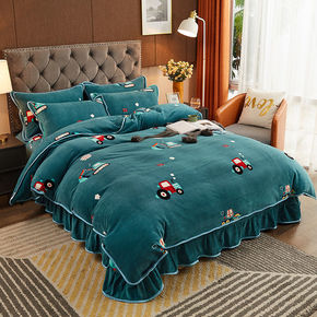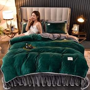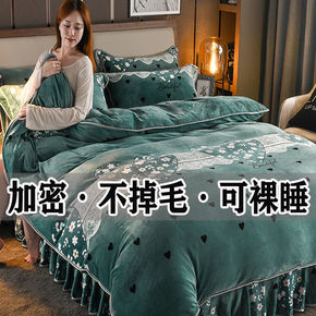 牛奶绒四件套床裙款冬季加厚珊瑚绒被套双面加绒法兰绒...