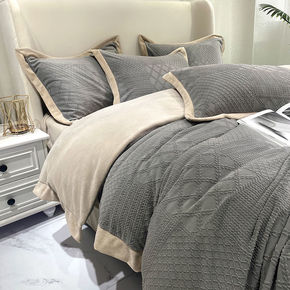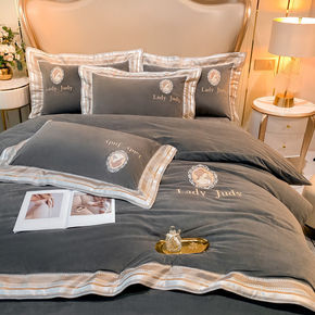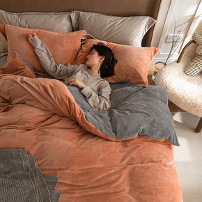高档牛奶绒四件套双面绒冬季珊瑚绒加厚防静电纯色法莱...
