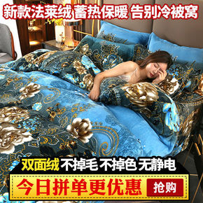 珊瑚绒四件套加厚牛奶绒冬季法莱法兰绒双面加绒被套床...