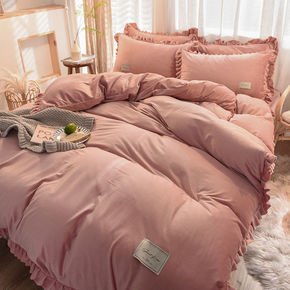 加绒加厚保暖牛奶绒金貂绒四件套床裙式纯色珊瑚绒法兰...
