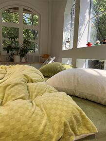 ins立体格子草绿色珊瑚绒双面牛奶法兰绒保暖四件套...