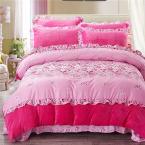 冬季公主风珊瑚绒四件套加绒牛奶羊羔绒法兰绒加厚被套...