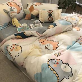 ins冬季加厚牛奶绒小恐龙床上四件套珊瑚绒1.5m...