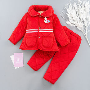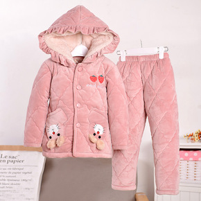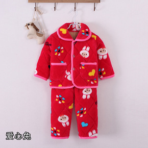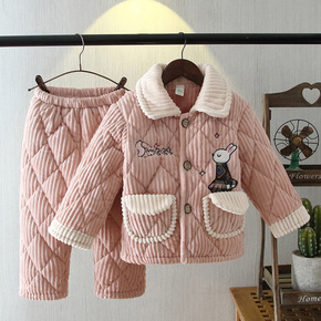 冬季儿童三层夹棉睡衣宝宝加厚法兰绒家居服套装宝宝女...