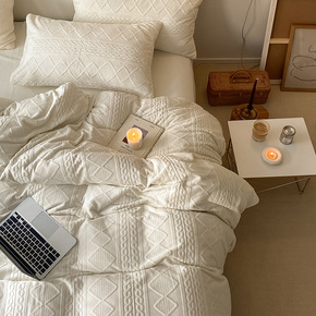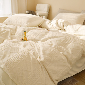 .韩式绞花牛奶绒四件套双面绒珊瑚绒冬季加厚保暖被套...